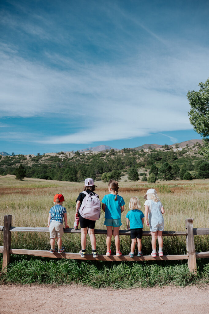 This is our hiking crew! It is always fun to be friends with other homeschooling families because you can get together for hikes and adventures right in the middle of the school day! I love these five all lined up in a row – scheming and planning for all the fun we will have heading to a fort out in the woods!