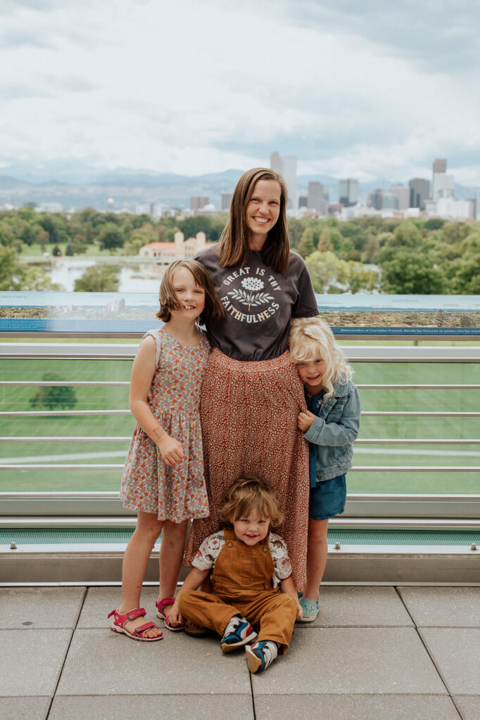 We took our crew to the Denver Museum of Nature and Science on a mid week field trip – got to love the flexibility homeschooling provides in avoiding crowds! Hilde loved the gems, Millie loved the animals, and Thorin loved the dinosaurs. They all loved the gift shop but they were not allow to linger there long 😉 This photo is the view at the top floor balcony. On a clear day you can see nearly the entire front range with the skyline of Denver taking stage. We all were shocked to learn we could see our mountain (Pikes Peak) all the way up here!