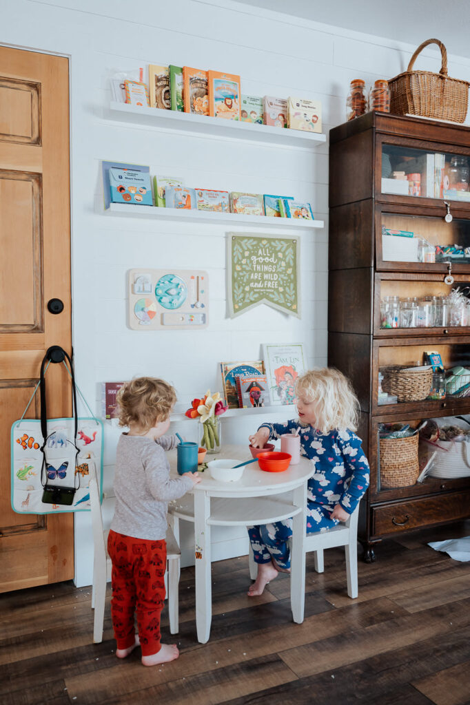 February brought a couple bugs into our home so we spent a lot of days together at-home as a family. As a homeschooling family, this can be pretty normal for us but I just love the relationships my kids have with each other. They are truly each other’s best friends. So here are two besties in jammies eating lunch (or breakfast?!) at their own tiny table!