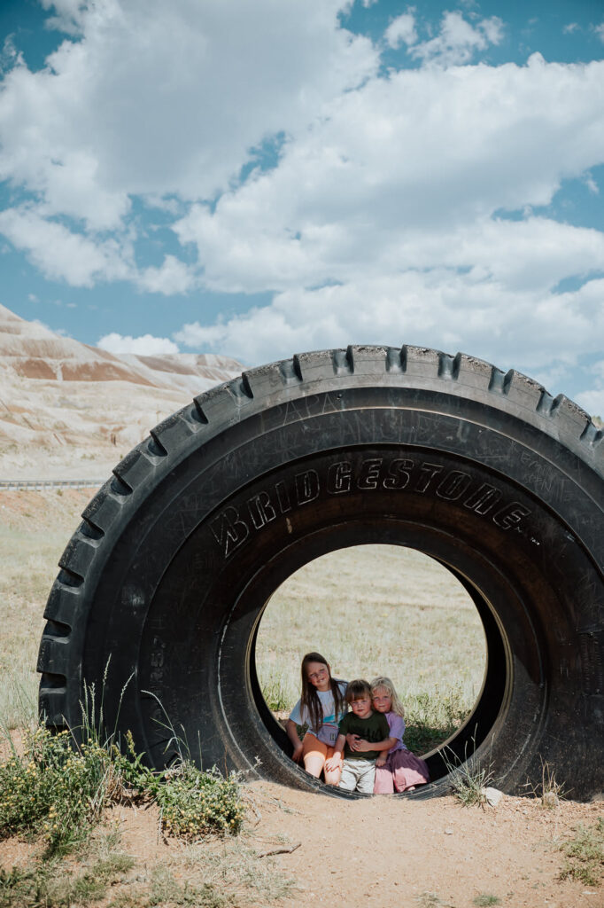We went on a family camping trip to Victor & Cripple Creek. We spent our time hiking, playing at our campground, and learning about the history of the Colorado Gold rush at the free Cripple Creek Heritage Center. This tire is from one of the trucks that is currently part of the gold mining operations in the area and we discovered it on one of our hikes.
