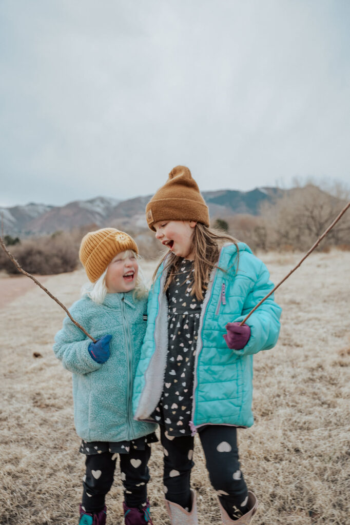 We spent a bunch of time outside. I love the photos from this day (there are so many more on my computer) but capturing sister pictures like this as they grow has been such a gift. Winter may be cold and brown, but it is worth bundling up for and getting outside. These mountain views on neighborhood walks are a daily reminder of the goodness of God.