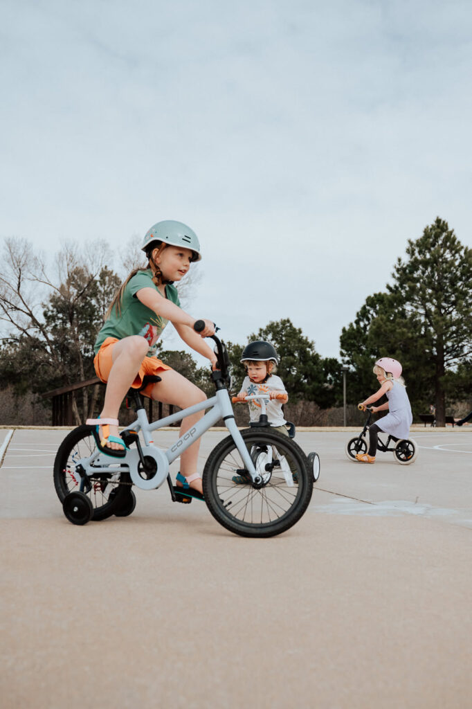 Three kids on bikes. Isn’t it incredible how you can blink and your babies are all kids? There is no need for a stroller when each one of your kids can slap on a helmet and pedal themselves straight to the basketball court at the park! This photo, catching all three of them in motion, is one of my favorites marking this season of childhood!