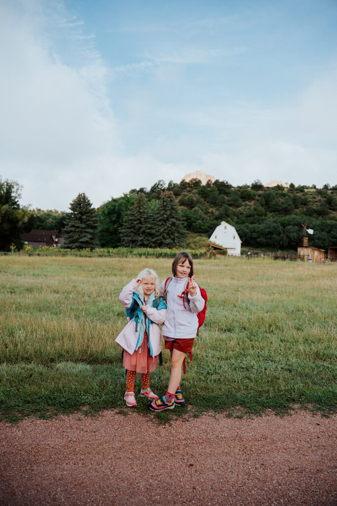 The girls BOTH when to school in August! Millie is holding up a zero for her Kindergarten year and Hilde rocking the peace sign as she went into the second grade! We homeschool but our girls go to an outdoor enrichment program where they learn, grow, and explore while spending most of their time in the great outdoors! We have loved this program and are so thankful for the many opportunities out there for homeschoolers today! PS: In the state of Colorado each homeschool student can do on of these enrichment programs for free!