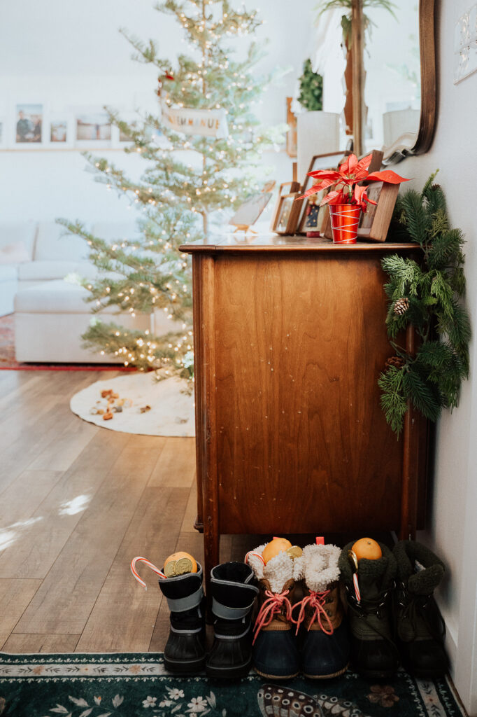 We tried out adding some new traditions into our Advent celebrations like St. Lucy’s and St. Nick’s! The kids left out their snow boots by the front door before bed and on the day of St. Nicholas (December 6th) they found Candy Canes representing his staff, Gold Coins representing his generosity, and Oranges representing the bags of gold he threw in the home of the poor man on behalf of his three daughters. You don’t need to go big, to elicit squeals of joy from your kids when celebrating any kind of holiday!