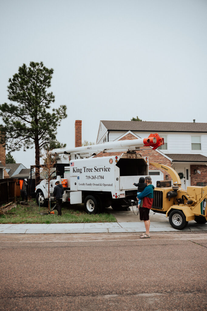 We finally cut down the last of the fire hazard, sickly pine trees that were right up on our house. The first couple we were able to take down ourselves, but this one leaned into our neighbors yard and towered above the others, putting both of our houses at risk. We discovered King Tree Service when they were trimming our neighbors’ tree and were VERY impressed with them and their pricing! Just an unpaid shoutout for anyone in the Colorado Springs area!